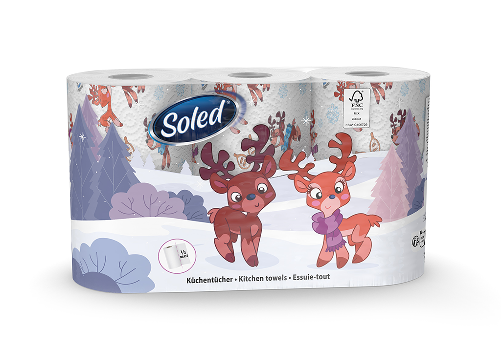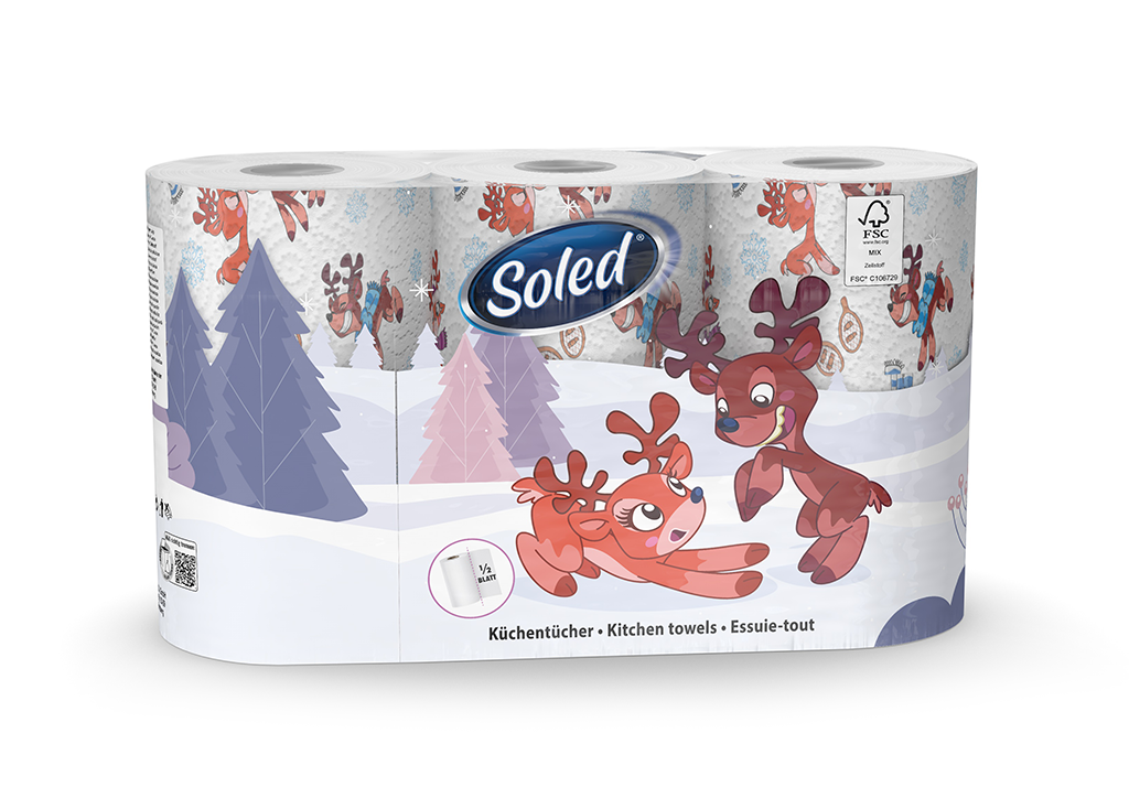 Soled bringt die Ruhe und Schlichtheit des Winters in Ihr Zuhause mit der Küchenrolle Winter Edition und lässt Sie in jedem Moment die Gelassenheit der Jahreszeit spüren. Hergestellt aus nachhaltig gewonnenen Materialien und durch umweltfreundliche Verfahren produziert, bietet diese Küchenrolle höchste Qualität in Sauberkeit und Nachhaltigkeit.